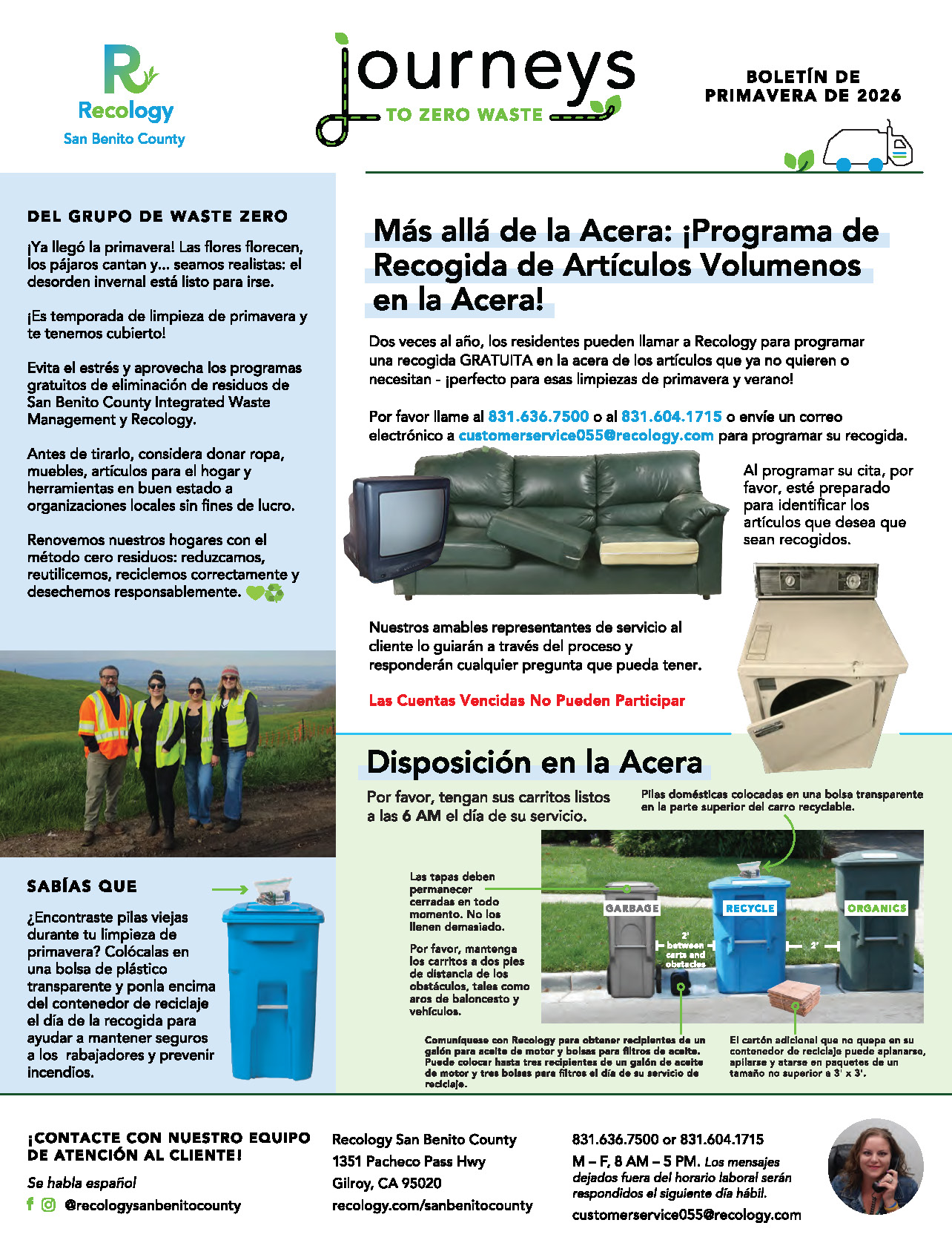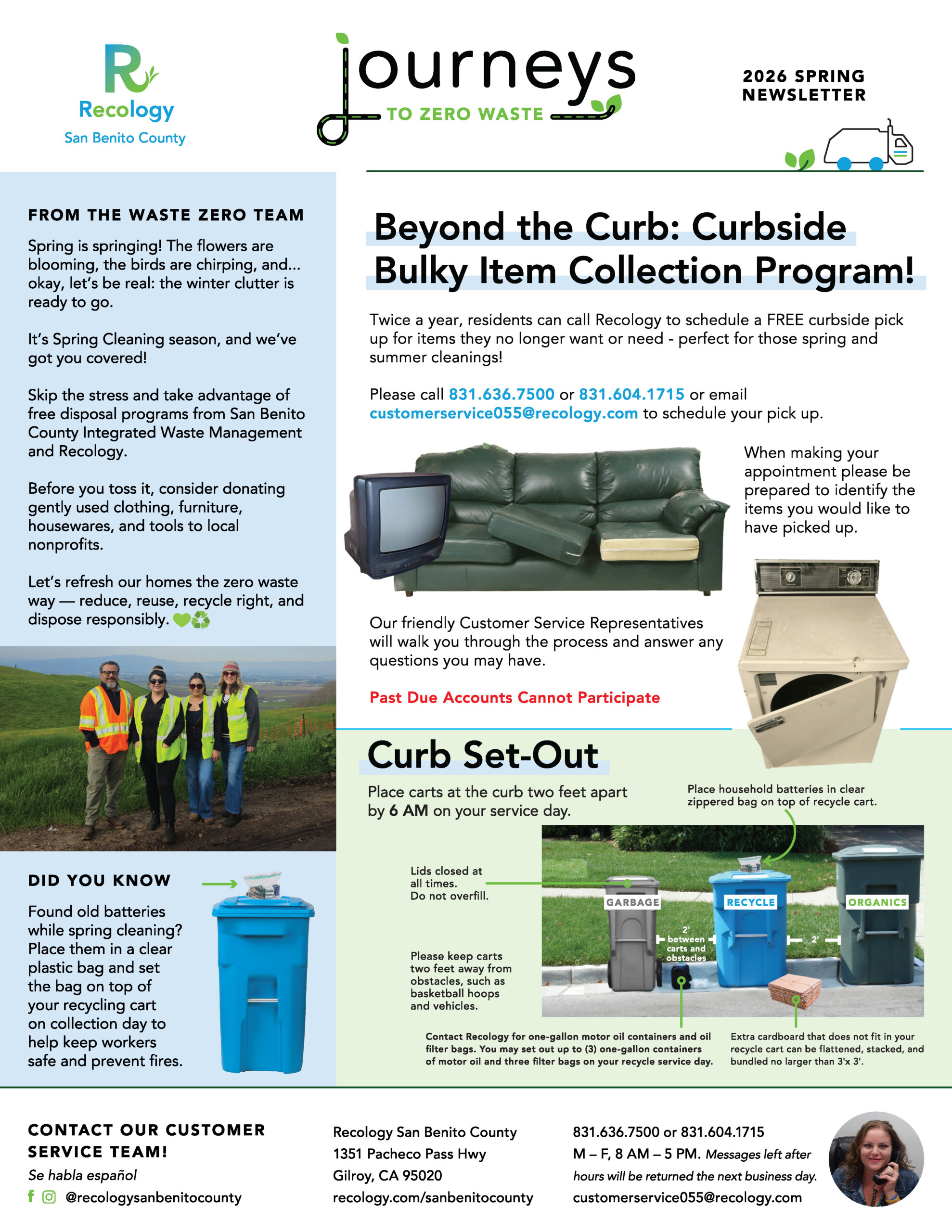 Our Journeys to Zero Waste Residential Newsletter is the best source for information on how to recycle, reduce waste, reuse, compost, and properly dispose of household waste for Recology San Benito County residential customers. Review our current and past newsletters here!