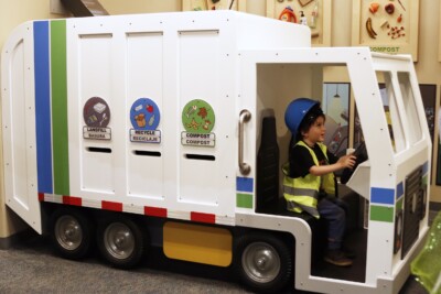 • Drive a Child-Sized Truck: Role-play as a recycling driver collecting neighborhood bins, complete with real hard hats and safety vests.