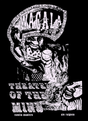In their short stop motion animated film and installation, Theater of the Mind, Wacala! Studios (Camila Montero and Ale Raigoza) present a surrealist dinner party where masked figures watch looped dramas play out on a pearl-operated cabinet at their table. The seated guests are performed by live action human actors wearing oversized costuming that evoke Costa Rican and Ecuadorian masquerade traditions, with each character bearing exaggerated human features suggesting the embodiment of an unknown narrative archetype. On the cabinet’s stage, a series of mechanized short scenes are automated, each rendered with their own textures.